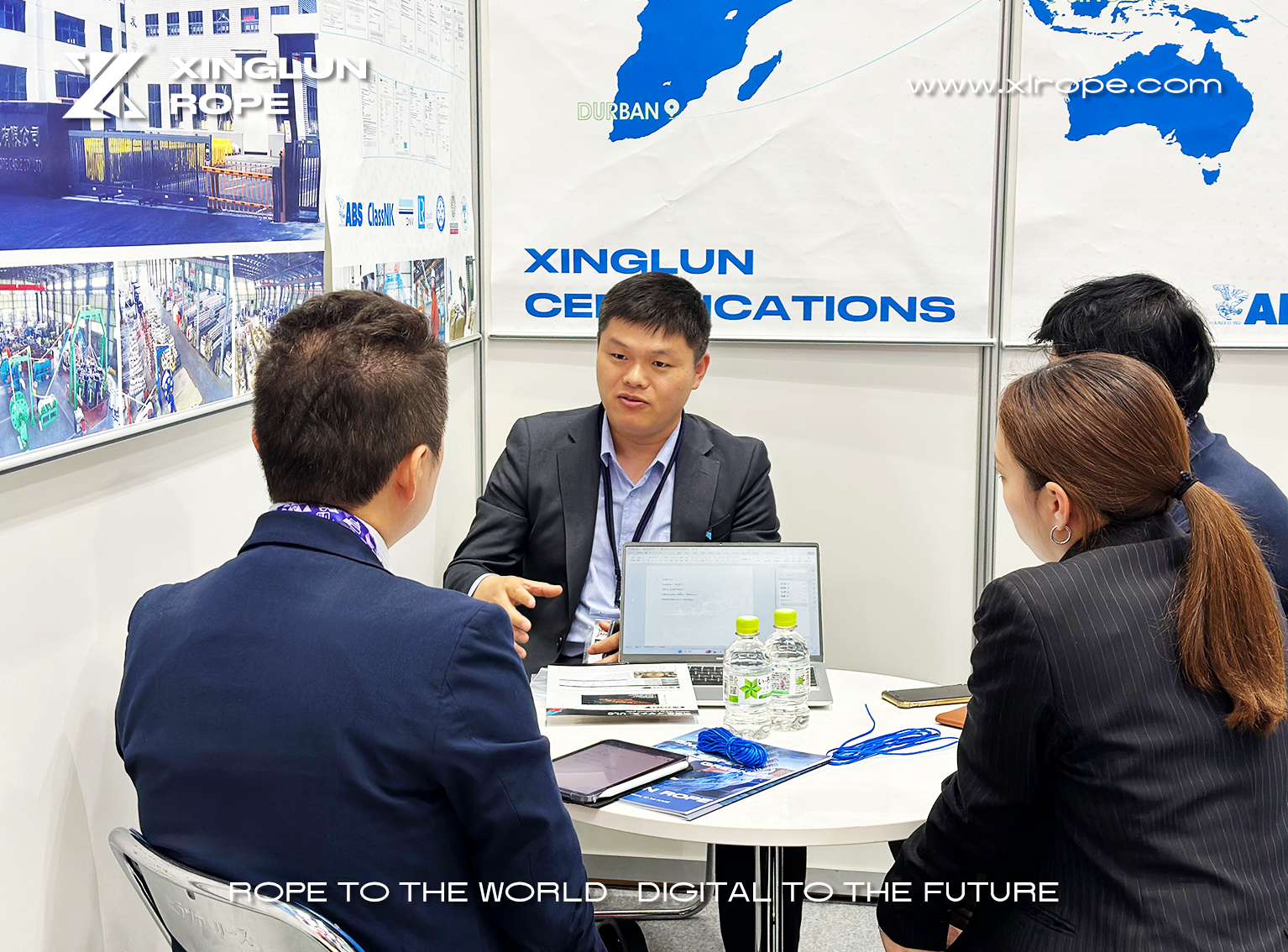Au stand 4D-09, Xinglun Rope a accueilli de nombreux clients nouveaux et de longue date, ainsi que des partenaires industriels. Des discussions approfondies ont eu lieu sur des sujets tels que la sélection des produits, leur utilisation et leur maintenance, ainsi que la gestion numérique. Grâce à ces échanges, l’entreprise a pleinement démontré ses capacités de service systématique tout en tirant de nouvelles idées et inspirations de chaque conversation.